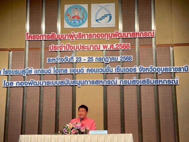 วันที่ 23 - 25 กรกฎาคม 2568 นางครสวรรค์ โภคา สหกรณ์จังหวัดเพชรบุรี พร้อมด้วยผู้อำนวยการกลุ่มส่งเสริมและพัฒนาการบริหารการจัดการสหกรณ์ เข้าร่วมโครงการสัมมนาผู้บริหารกองทุนพัฒนาสหกรณ์ ประจำปีงบประมาณ พ.ศ. 2568 ณ โรงแรมสุนีย์ แกรนด์ โฮเทล แอนด์ คอนเวนชั่น เซ็นเตอร์ อำเภอเมือง จังหวัดอุบลราชธานี โดยมีนายวิศิษฐ์ ศรีสุวรรณ์ อธิบดีกรมส่งเสริมสหกรณ์ เป็นประธานในพิธีเปิดโครงการ ร่วมด้วยคณะผู้บริหารกรมส่งเสริมสหกรณ์ ผู้เข้าสัมมนา จำนวน 220 คน วัตถุประสงค์เพื่อติดตามและประเมินผลโครงการ/แผนงานของสหกรณ์ที่ได้รับการสนับสนุนเงินกองทุนพัฒนาสหกรณ์ รวมถึงเพิ่มประสิทธิภาพการบริหารจัดการกองทุนพัฒนาสหกรณ์