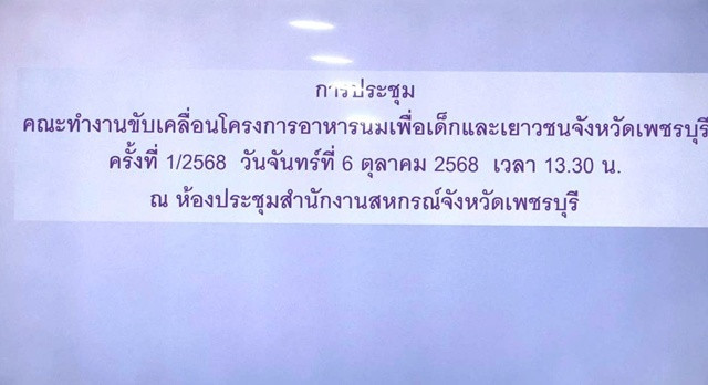 วันที่ 6 ตุลาคม 2568 เวลา 13.30 น. นางครสวรรค์ โภคา สหกรณ์จังหวัดเพชรบุรี พร้อมด้วยกลุ่มส่งเสริมและพัฒนาธุรกิจสหกรณ์ จัดประชุมคณะทำงานขับเคลื่อนโครงการอาหารนมเพื่อเด็กและเยาวชน จังหวัดเพชรบุรี ณ ห้องประชุมชั้น 3 สำนักงานสหกรณ์จังหวัดเพชรบุรี อำเภอเมืองเพชรบุรี จังหวัดเพชรบุรี โดยมีนางวันเพ็ญ มังศรี รองผู้ว่าราชการจังหวัดเพชรบุรี ประธานคณธทำงาน เป็นประธานการประชุม เพื่อขับเคลื่อนโครงการอาหารนมเพื่อเด็กและเยาวชนในพื้นที่ โดยการจัดตั้งคณะทำงานให้ครอบคลุมการดำเนินงาน พร้อมทั้งแต่งตั้งบุคลากรที่มีความรู้ความสามารถ ทั้งด้านการตรวจสอบคุณภาพน้ำนมและการส่งเสริมให้เด็กและเยาวชนในจังหวัดได้รับการบริโภคนมที่มีคุณภาพ สะอาด ปลอดภัย และเหมาะสมกับวัย เพื่อส่งเสริมพัฒนาการทางร่างกายและสติปัญญาอย่างมีประสิทธิภาพ
