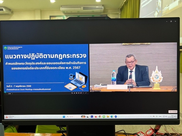วันที่ 6 พฤศจิกายน 2568 นางครสวรรค์ โภคา สหกรณ์จังหวัดเพชรบุรี พร้อมด้วยบุคลากรสำนักงานสหกรณ์จังหวัดเพชรบุรี เข้าร่วมประชุมชี้แจงแนวทางปฏิบัติตามกฎกระทรวงกำหนดลักษณะ วัตถุประสงค์ และขอบเขตแห่งการดำเนินกิจการของสหกรณ์แต่ละประเภทที่จะรับจดทะเบียน พ.ศ. 2567 โดยมีนายประวัติ แดงบรรจง รองอธิบดีกรมส่งเสริมสหกรณ์ เป็นประธานในพิธีเปิดการประชุม โดยถ่ายทอดสัญญาณผ่านระบบ Zoom Meeting เพื่อซักซ้อมและชี้แจงแนวทางปฏิบัติให้แก่บุคลากรกรมส่งเสริมสหกรณ์ให้เกิดความเข้าใจในการรับจดทะเบียนข้อบังคับให้เป็นไปในทิศทางเดียวกัน ณ ห้องประชุมชั้น 3 สำนักงานสหกรณ์จังหวัดเพชรบุรี