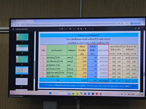 วันที่ 7 พฤศจิกายน 2568 เวลา 09.30 น. นางครสวรรค์ โภคา สหกรณ์จังหวัดเพชรบุรี พร้อมด้วยกลุ่มส่งเสริมและพัฒนาธุรกิจสหกรณ์ จัดประชุมคณะอนุกรรมการบริหารโครงการภายใต้มาตรการรักษาเสถียรภาพราคาข้าวเปลือกระดับจังหวัด ปีการผลิต 2568/69 โดยมีนายไตรภพ วงศ์ไตรรัตน์ ผู้ว่าราชการจังหวัดเพชรบุรี เป็นประธานการประชุม ณ ห้องประชุมต้นตาล ศาลากลางจังหวัดเพชรบุรี (หลังเก่า) เพื่อพิจารณาให้ความเห็นกรณีสหกรณ์เช่ายุ้งฉาง เพื่อเก็บรักษาผลผลิตข้าวเปลือกที่เข้าร่วมโครงการสินเชื่อชะลอการขายข้าวเปลือกนาปี ปีการผลิต 2568/69 จำนวน 6 แห่ง ที่ขอกู้เงินโครงการสินเชื่อฯ ได้แก่ สหกรณ์การเกษตรบ้านลาด จำกัด สหกรณ์การเกษตรเขาย้อย จำกัด สหกรณ์การเกษตรเมืองเพชรบุรี จำกัด สหกรณ์นิคมชะอำ จำกัด ชุมนุมสหกรณ์จังหวัดเพชรบุรี และสหกรณ์การเกษตรเพื่อการตลาดลูกค้า ธ.ก.ส.เพชรบุรี จำกัด มติที่ประชุมเห็นชอบสถานที่เก็บรักษาข้าวเปลือกของสหกรณ์ว่ามีความเหมาะสมตามหลักเกณฑ์ของโครงการ