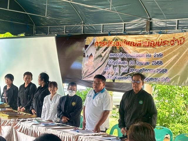 วันที่ 20 พฤศจิกายน 2568 นางครสวรรค์ โภคา สหกรณ์จังหวัดเพชรบุรี เป็นประธานในพิธีเปิดการประชุมใหญ่สามัญประจำปีสหกรณ์การเกษตรหุบกะพง จำกัด ร่วมด้วยผู้อำนวยการศูนย์สาธิตสหกรณ์โครงการหุบกะพง ผู้อำนวยการกลุ่มส่งเสริมและพัฒนาธุรกิจสหกรณ์ ผู้อำนวยการกลุ่มจัดตั้งและส่งเสริมสหกรณ์ กลุ่มตรวจการสหกรณ์ และเจ้าหน้าที่ศูนย์ฯ สำหรับปีบัญชีสิ้นสุดวันที่ 30 มิถุนายน 2568 สหกรณ์มีผลการดำเนินงาน ดังนี้