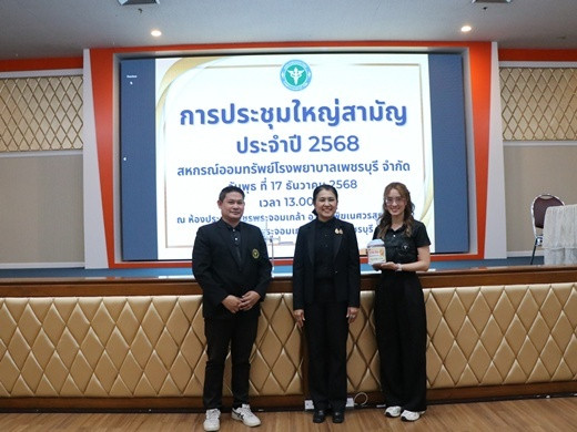 วันที่ 17 ธันวาคม 2568 เวลา 13.00 น. นางครสวรรค์ โภคา สหกรณ์จังหวัดเพชรบุรี พร้อมด้วยกลุ่มส่งเสริมสหกรณ์ 1 เข้าร่วมประชุมใหญ่สามัญประจำปีสหกรณ์ออมทรัพย์โรงพยาบาลเพชรบุรี จำกัด ณ ห้องประชุมเพชรพระจอมเกล้า ชั้น 9 อาคารพิฆเนศวรสุรสังกาศ โรงพยาบาลพระจอมเกล้า จังหวัดเพชรบุรี สหกรณ์มีผลการดำเนินงาน ดังนี้