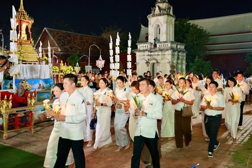 วันที่ 3 มีนาคม 2569 นางครสวรรค์ โภคา สหกรณ์จังหวัดเพชรบุรี พร้อมด้วยกลุ่มส่งเสริมสหกรณ์ 3 และกลุ่มส่งเสริมสหกรณ์ 4 ร่วมพิธีเวียนเทียนเนื่องในวันมาฆบูชา ณ วัดใหญ่สุวรรณณาราม วรวิหาร อำเภอเมืองเพชรบุรี จังหวัดเพชรบุรีโดยมีนายชัยพล ภูต้องลม รองผู้ว่าราชการจังหวัดเพชรบุรี เป็นประธานฝ่ายฆราวาส ร่วมด้วยรองนายกเหล่ากาชาดจังหวัดเพชรบุรี หัวหน้าส่วนราชการ ข้าราชการ เจ้าหน้าที่ และประชาชนชาวจังหวัดเพชรบุรี เพื่อร่วมกันสืบสานประเพณีทางพระพุทธศาสนาและถวายเป็นพุทธบูชา